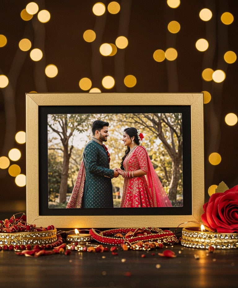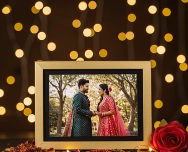 Elegant couple portraits, engraved name plates, return gifts, and keepsakes that capture the joy of togetherness.
